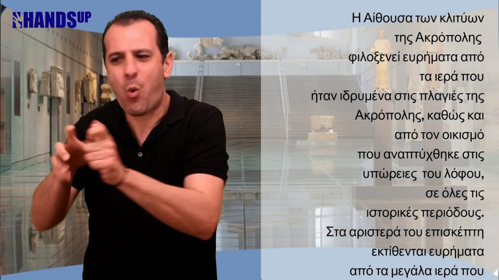 Ο επισκέπτης του Μουσείου της Ακρόπολης, αφού διασχίσει τον προθάλαμο του ισογείου, βρίσκεται στον πρώτο εκθεσιακό χώρο. Στην ευρύχωρη αίθουσα με το κεκλιμένο γυάλινο δάπεδο παρουσιάζονται ευρήματα από τις κλιτύς (πλαγιές) του βράχου της Ακρόπολης. Το γυάλινο δάπεδο επιτρέπει την θέαση στην αρχαιολογική ανασκαφή, ενώ η ανηφορική κλίση της παραπέμπει στην ανάβαση προς την Ακρόπολη.